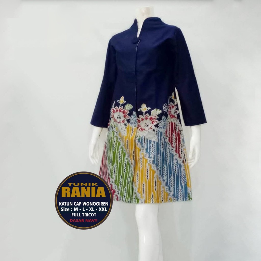 Name: Tunik Premium Batik Cap Wonogiren Hitam Navy Merah Lapis Tricot Seragam Kerja S M L Xl Xxl